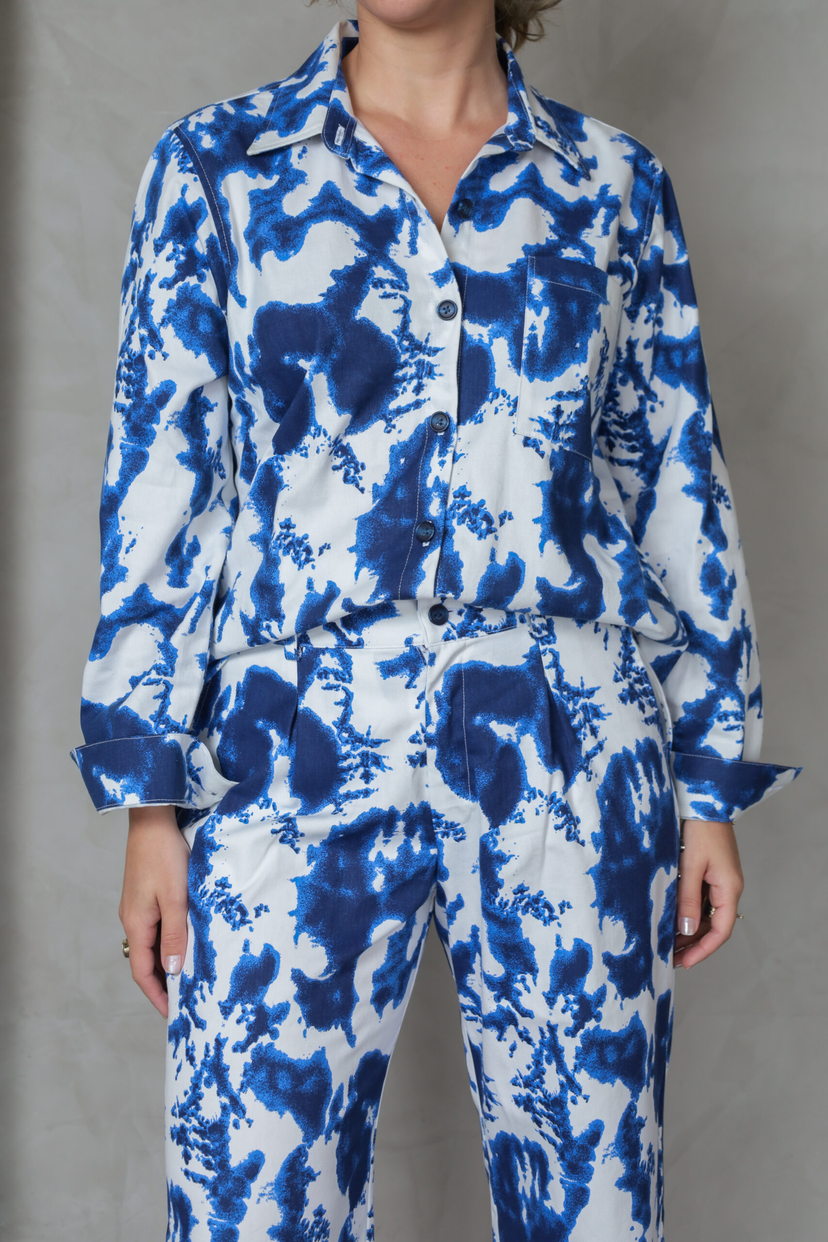 A estampa Acqua é o ponto central da peça, um convite à elegância fora do óbvio que reflete a identidade criativa da MAHACA.