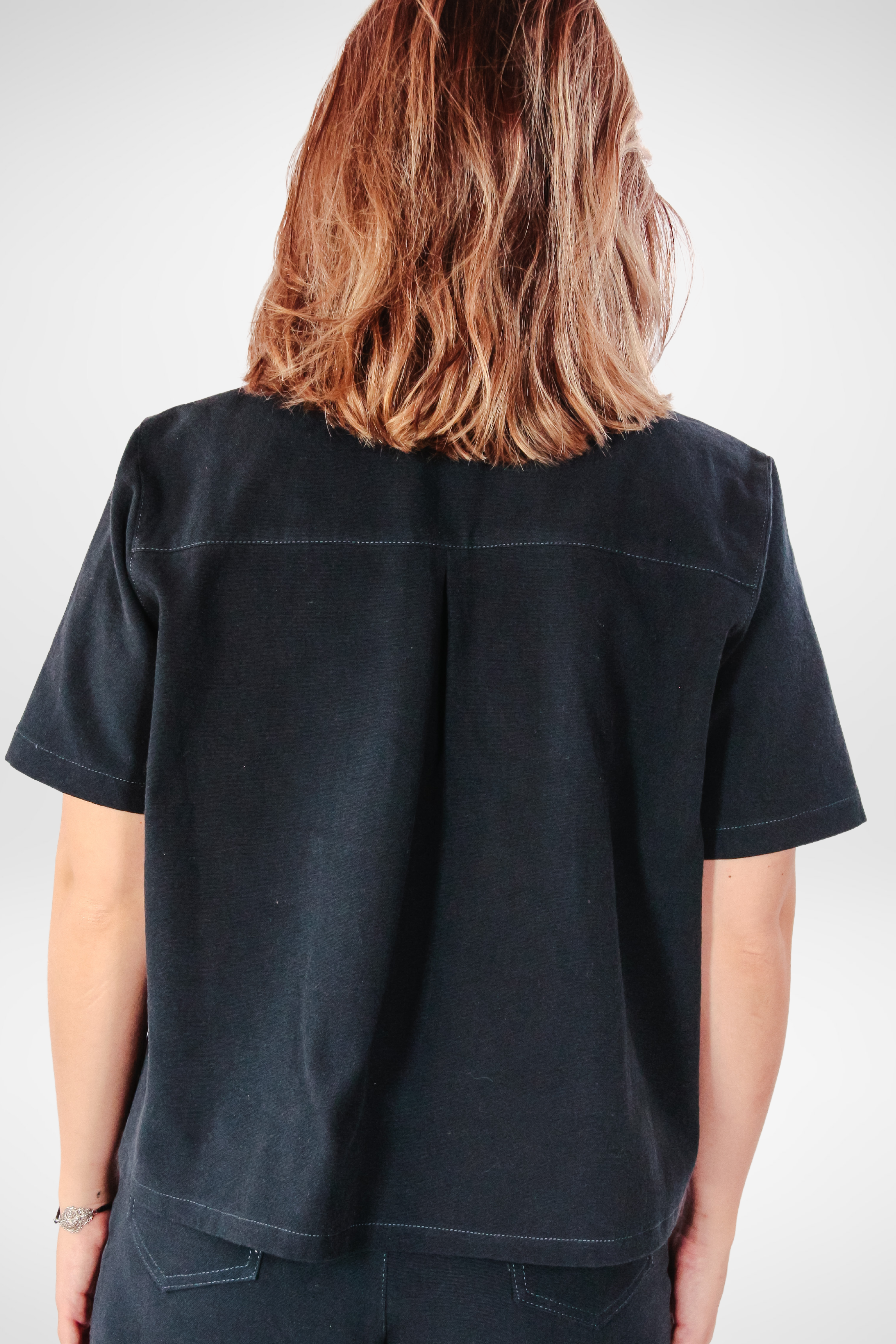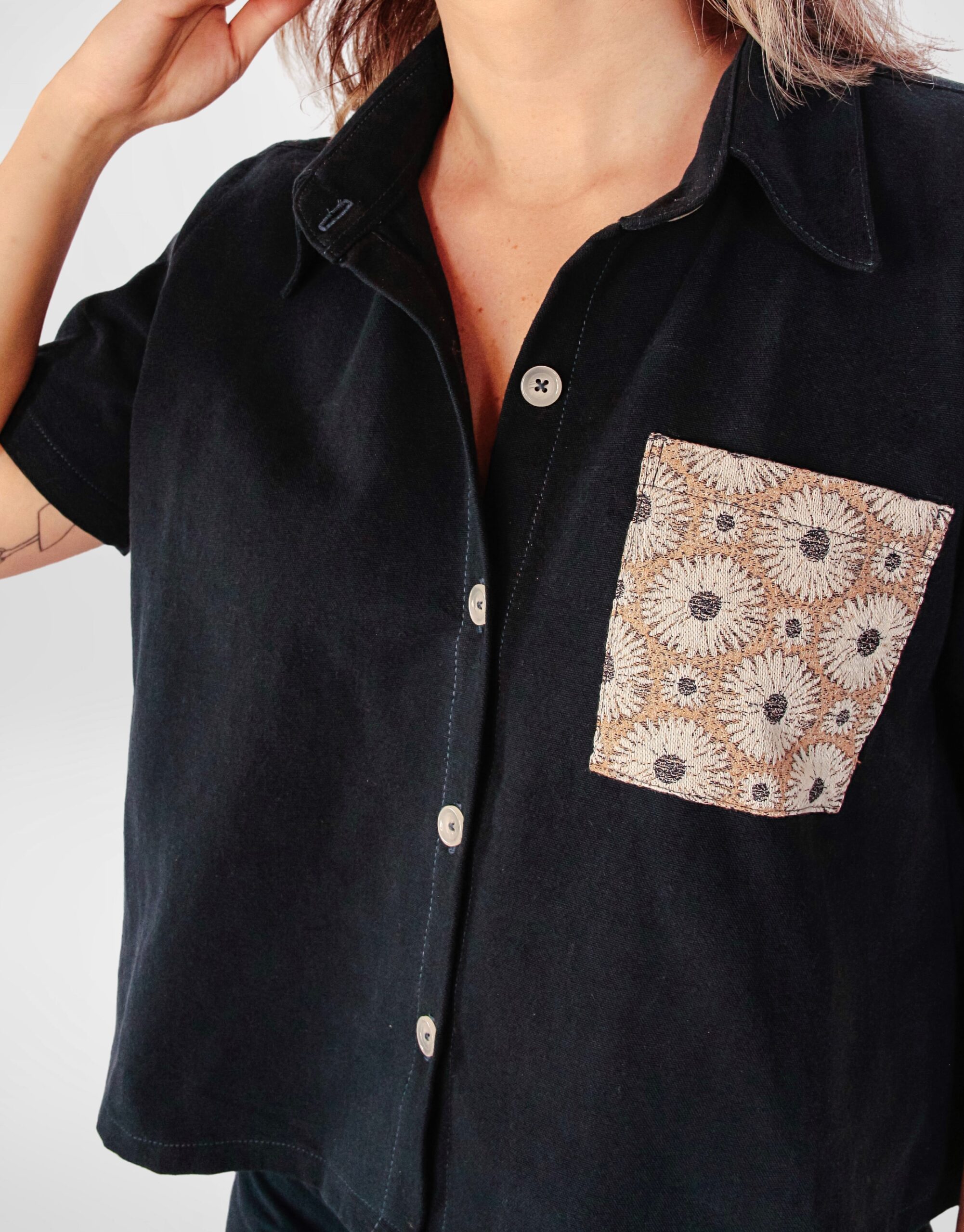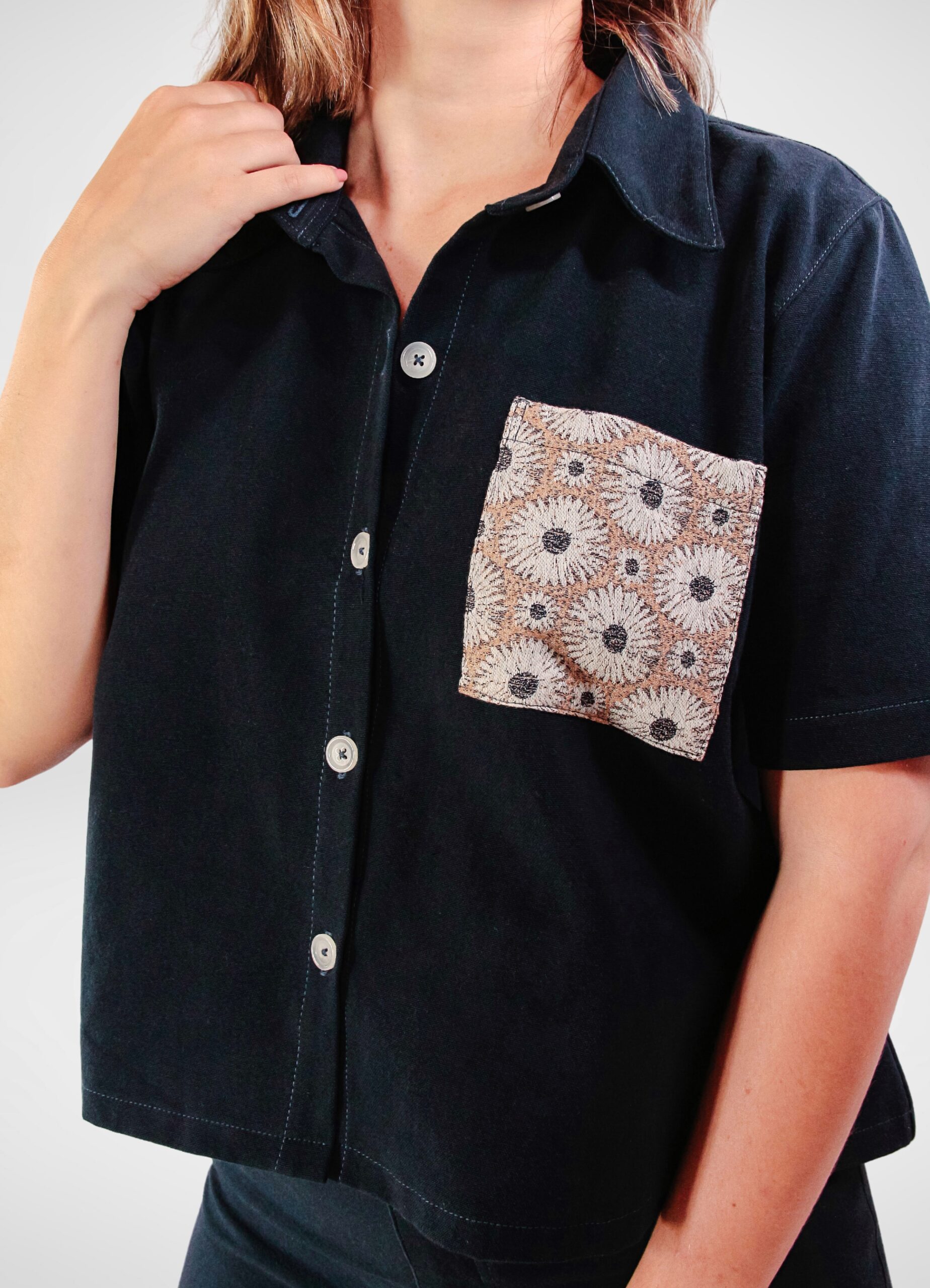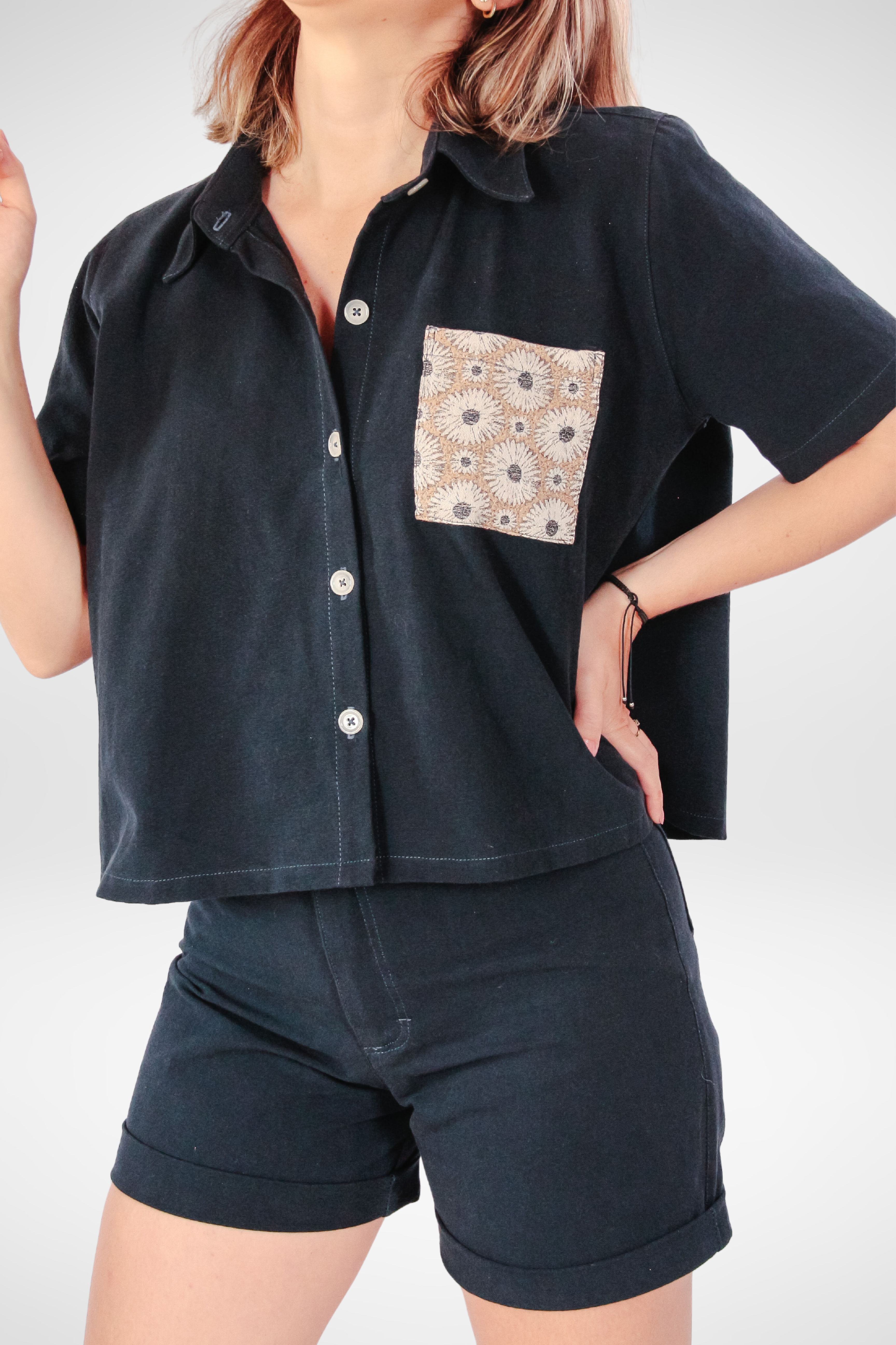 Camisa cropped com modelagem ampliada (oversized) de manga curta com bolso